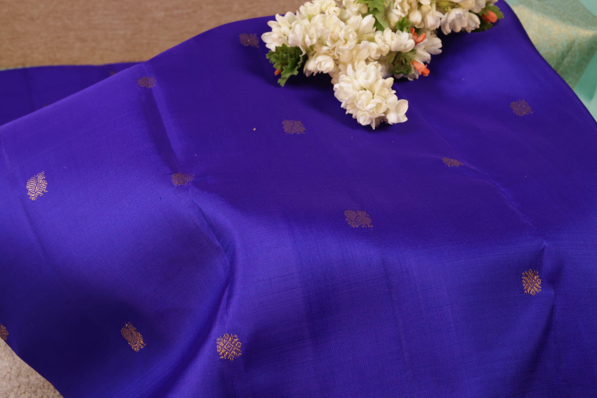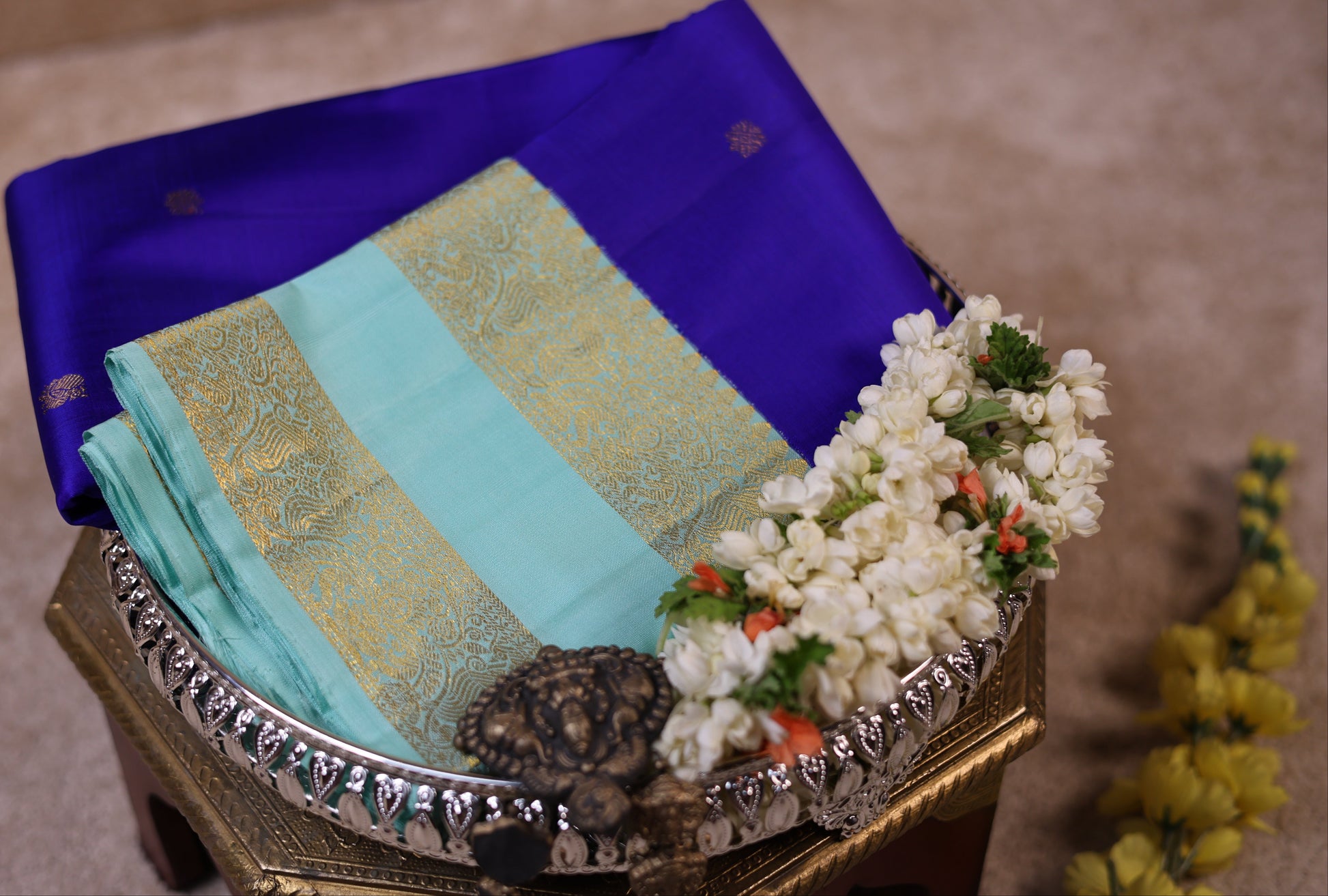 Bentex Butta Pure Silk Saree – Blue & Light Green (Double G Border)(Code PSS-08)