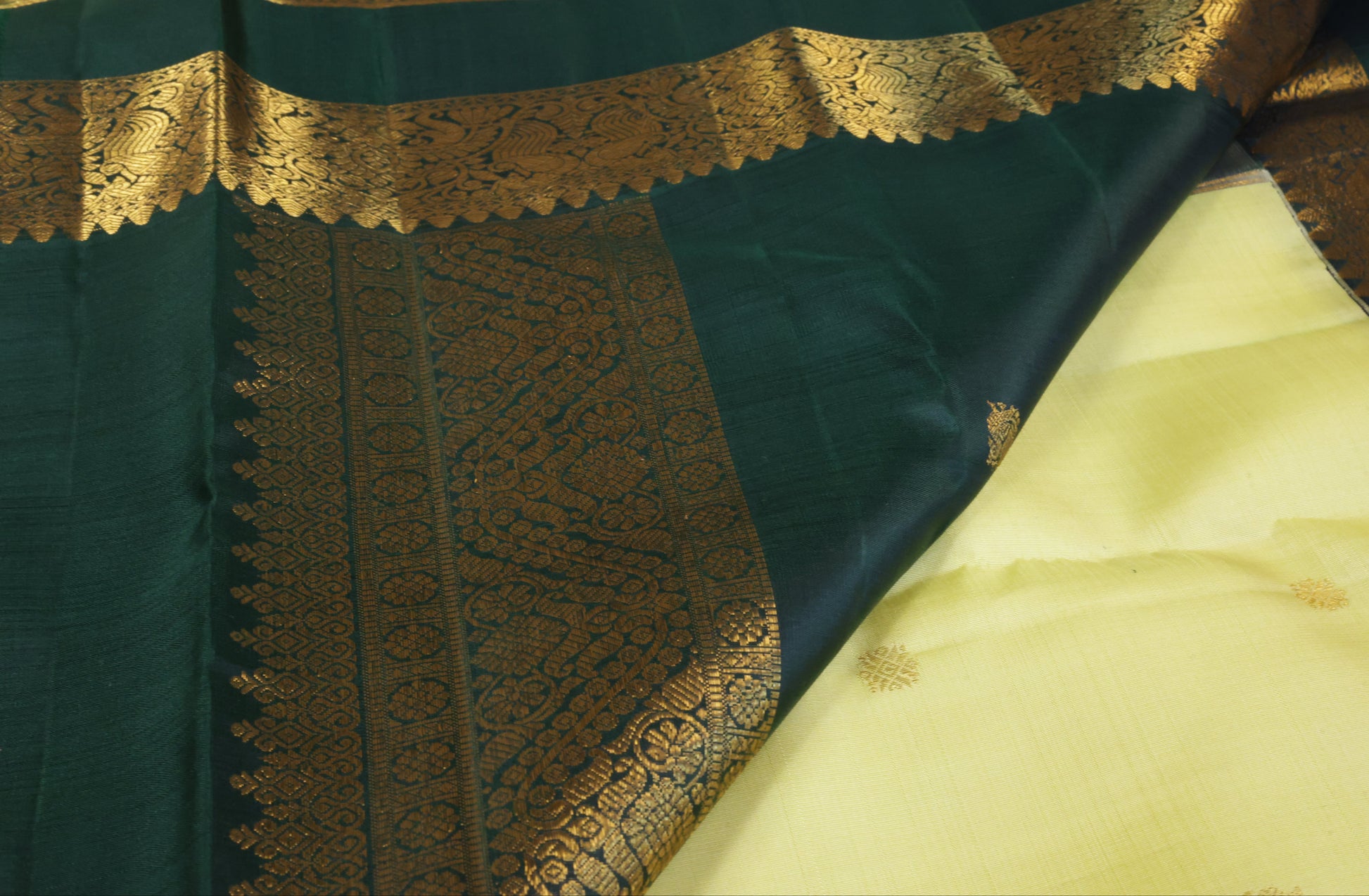 Lemon Yellow Pure Silk Saree with Dark Green Peacock Zari Border(Code PSS-36)