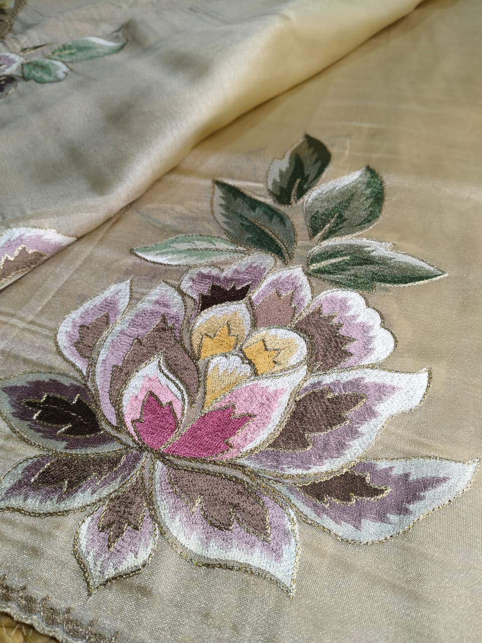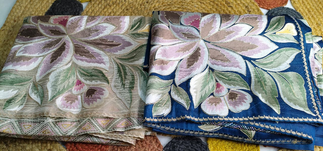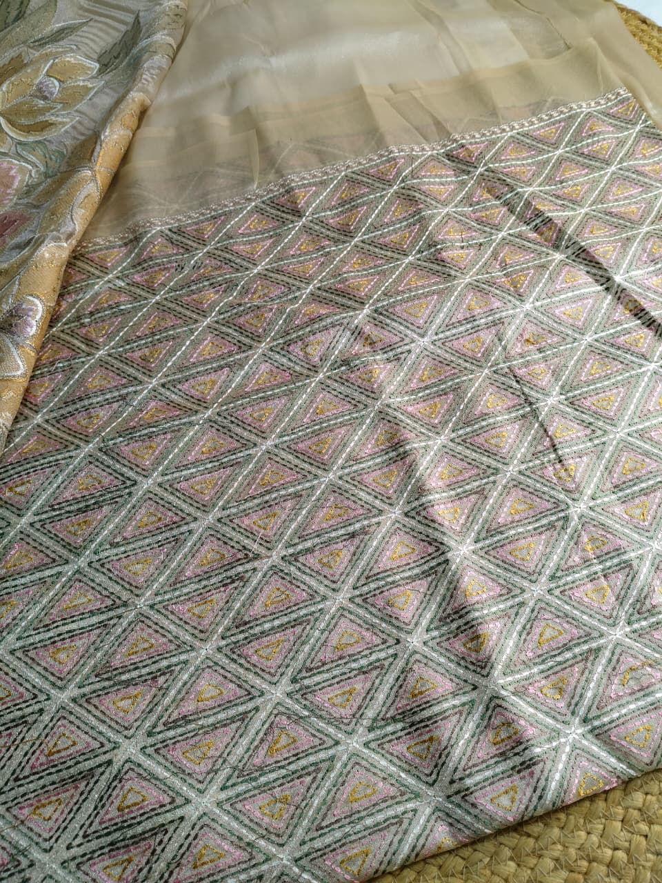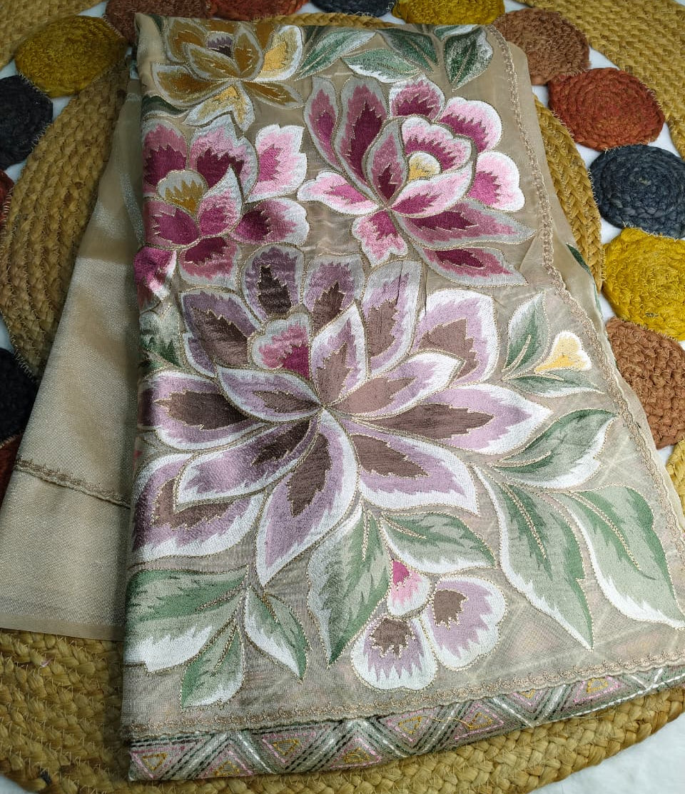 Pure Tissue Organza Saree With Meenakari Resham Floral Pallu Work & Peeta Border(Code FTS-02)