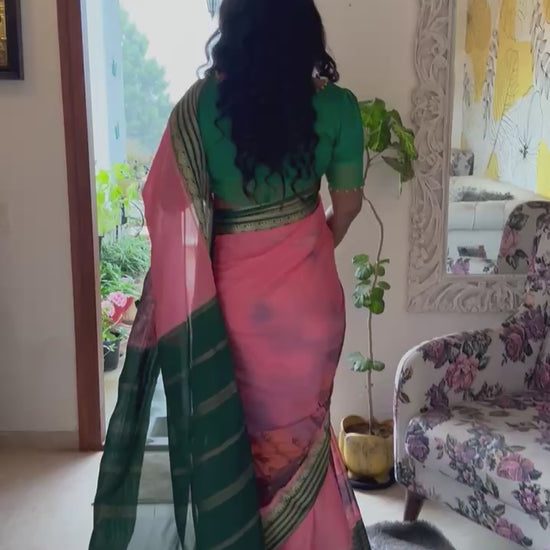 Border: Rich woven zari-style border with elephant motifs in contrasting vibrant shadesOccasion: Festive wear | Weddings | Temple visits | Cultural gatherings | Gifting